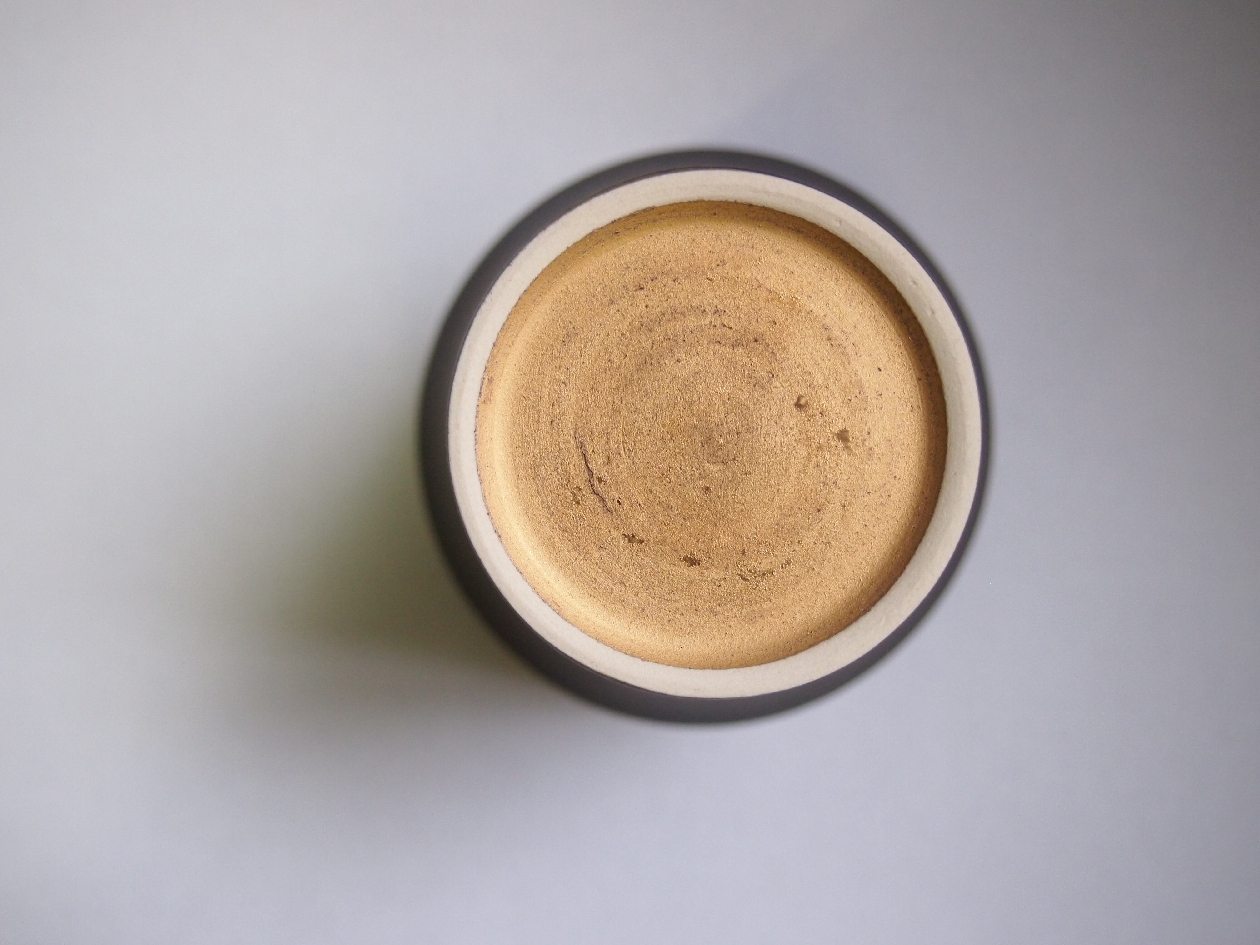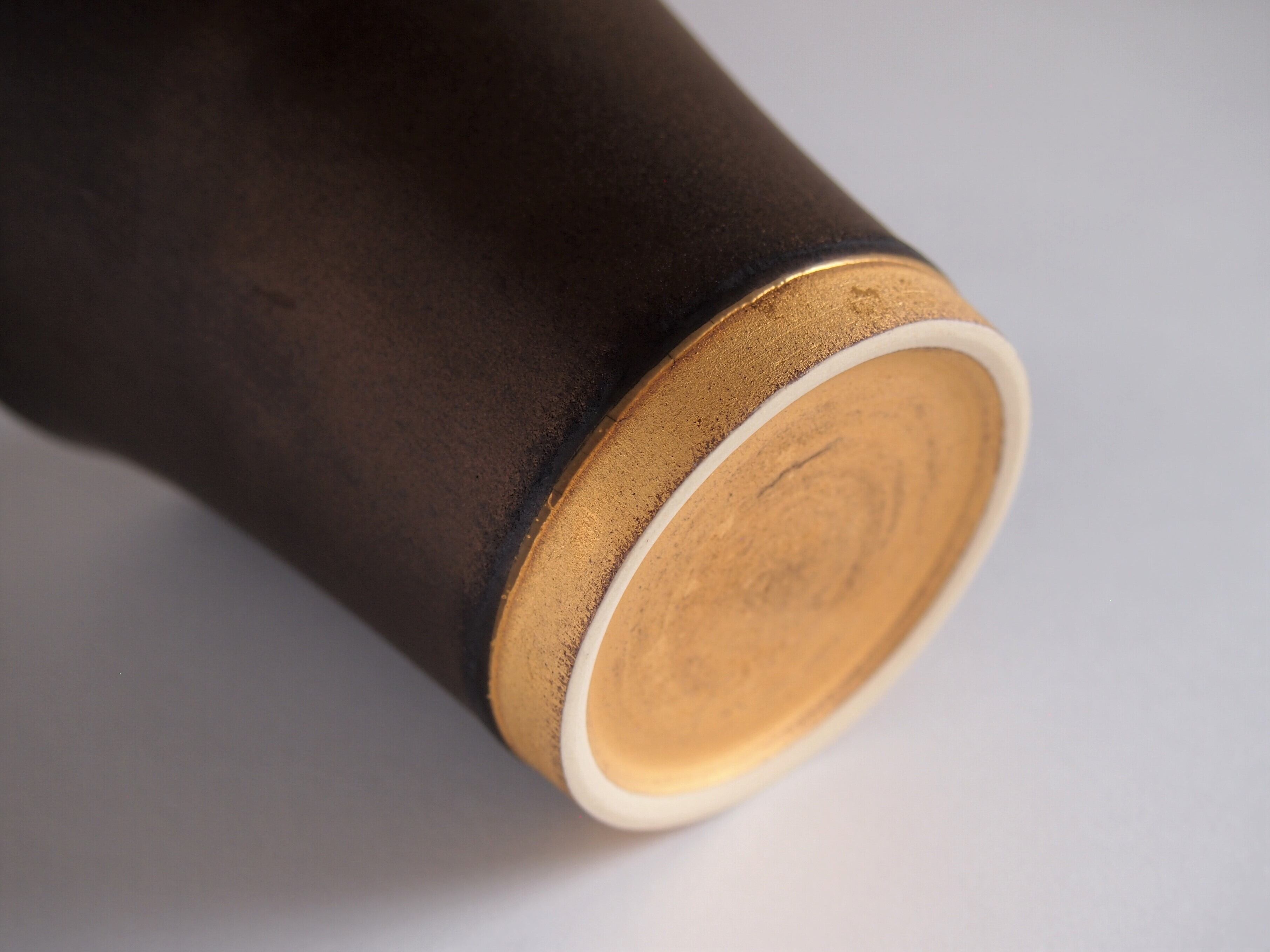 ・白土にブロンズ釉(金属感茶褐色)/下部・高台部分に金彩