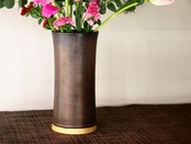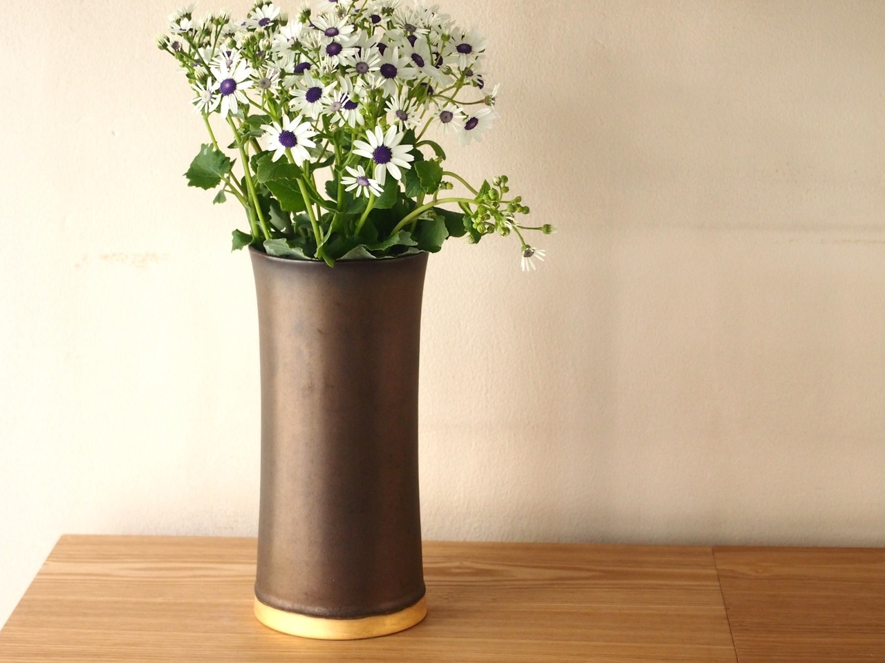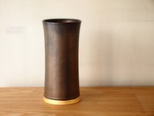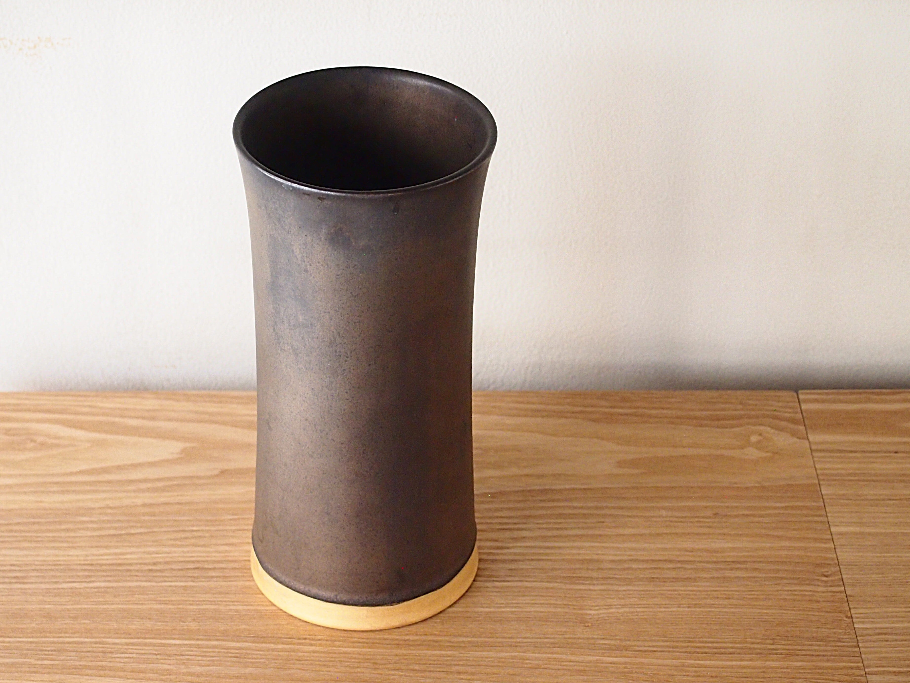 ・白土にブロンズ釉(金属感茶褐色)/下部・高台部分に金彩